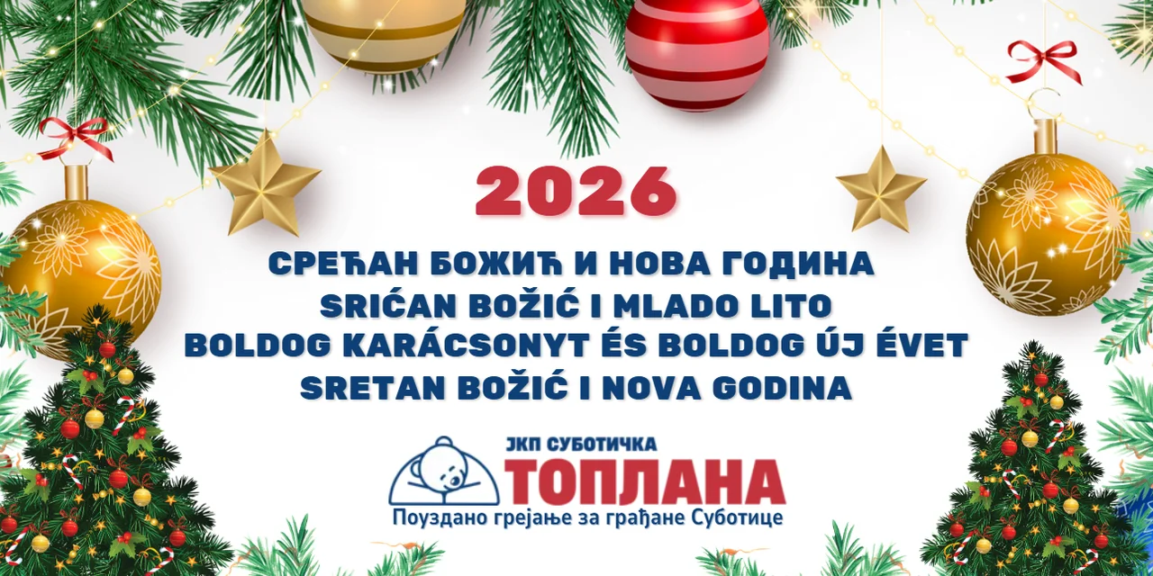 JKP ‘Subotička toplana’ svim sugrađanima želi sretnu i uspješnu Novu Godinu te blagoslovljene božićne blagdane!